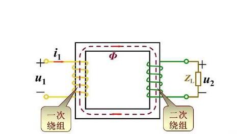 如上图所示,在一次绕组和交流电源连接的情况下,绕组中存在交流电流,在铁心中产生磁通,此时,该交变磁通使一次绕组和二次绕组同时交链,在这两个绕组中产生感应电动势。