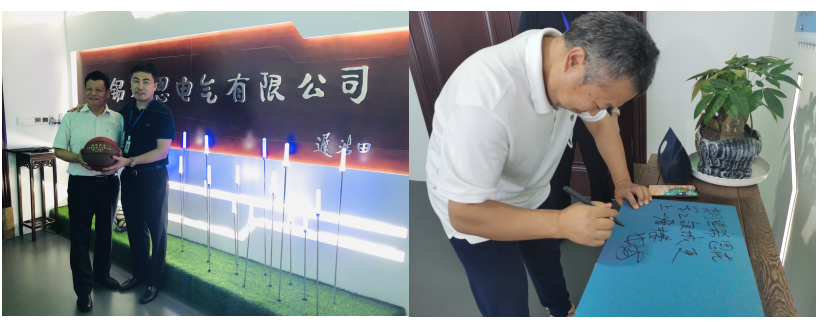 钱总向胡秘书长赠送榴莲视频APP下载IOS电气建厂35周年纪念篮球 北京七星飞行有限公司总经理张卫东题词