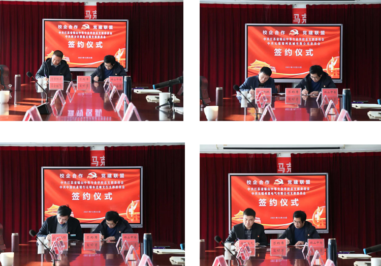 为认真贯彻落实党的十九届六中全会精神,创新基层党建工作载体,提高基层党建工作水平,进一步巩固学习实践活动成果。12月22日下午,江苏省锡山中等专业学校党总支与多家企业的党组织开展“校企合作 党建联盟”签约仪式。来自无锡锡州机械有限公司党委、同方计算机无锡党支部、中国农业银行无锡东北塘支行党支部、无锡榴莲视频APP下载IOS电气有限公司党支部等党组织领导参加了本次仪式。